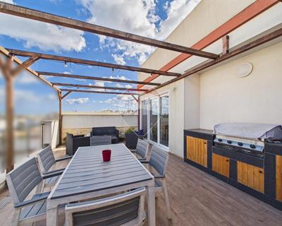MARSASCALA – PENTHOUSE – Situated in a tranquil residential area in a modern block of 8 units. Layout consists of a Kitchen/Living/Dining, 2 Bedrooms, Study Room, Main Bathroom, Front Terrace & Back Terrace which has laundry area. This property is freehold, served with lift and is being offered Furnished & Ready to move into. Optional Inter-connected 1 car garage also available. For more information or to set up an on-site viewing, contact agent.